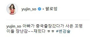 소유진은 “아빠가 출장갔다가 사온 꼬맹이들 장난감~~ 재밌다”며 직접 장난감을 가지고 노는 모습을 사진으로 남겼다.