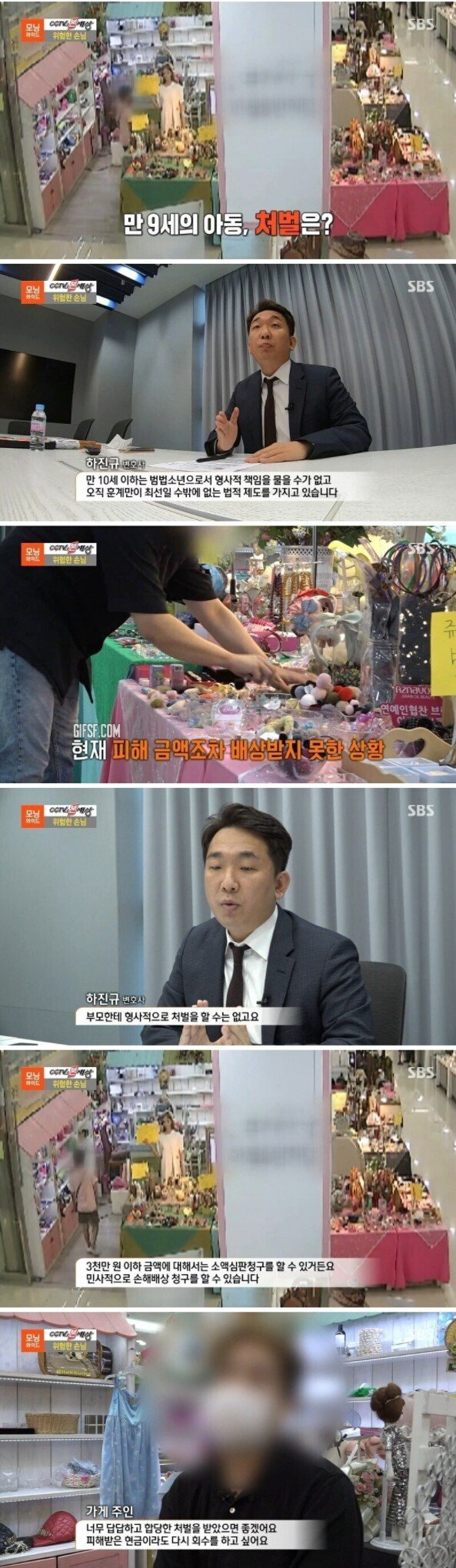 아이의 부모한테도 형사적으로 처벌을 할 수 없었기에 가게 주인은 “너무 답답하고 합당한 처벌을 받았으면 좋겠다.”라며 심정을 밝혔다.