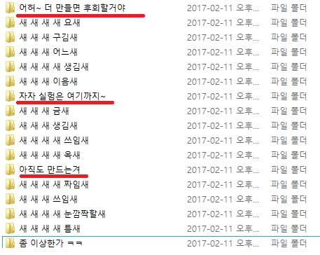 그렇게 ‘새 새 새 새’까지 만들면 ‘새 이름도 바닥났어’ 라는 폴더가 생긴다.