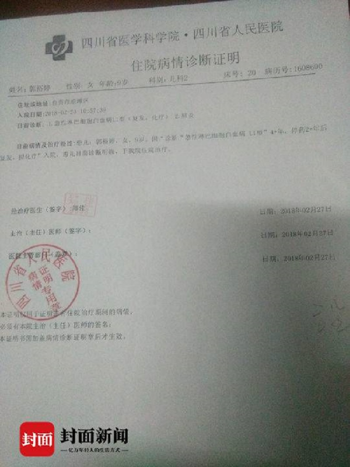 궈 씨는 “딸을 살리기 위해서라면 뭐든지 할 수 있다. 체면 따위는 내게 아무런 의미도 없다”고 말했다.