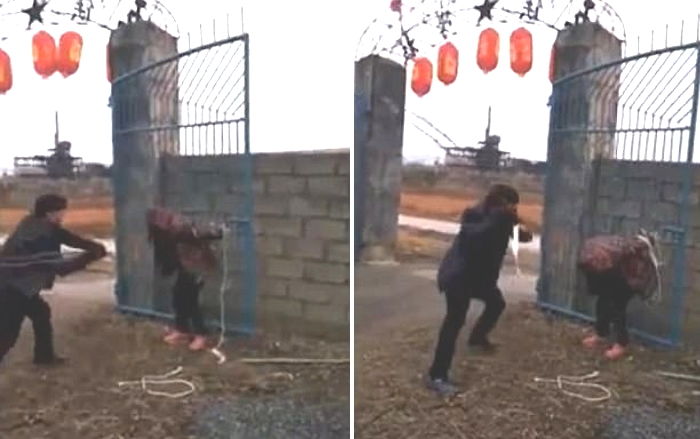 지난 29일 중국의 한 마을에서 자신의 반려견을 죽이고 그걸 팔아넘기려 했던 도둑을 매질하는 영상이 공개되었다.