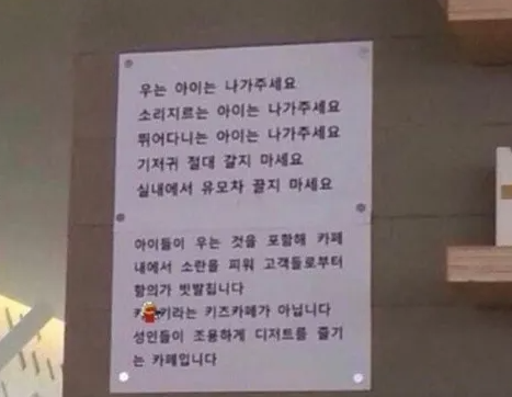 노키즈존은 어린이들 때문에 만들어졌다고 생각하는 사람들이 몇 있다.