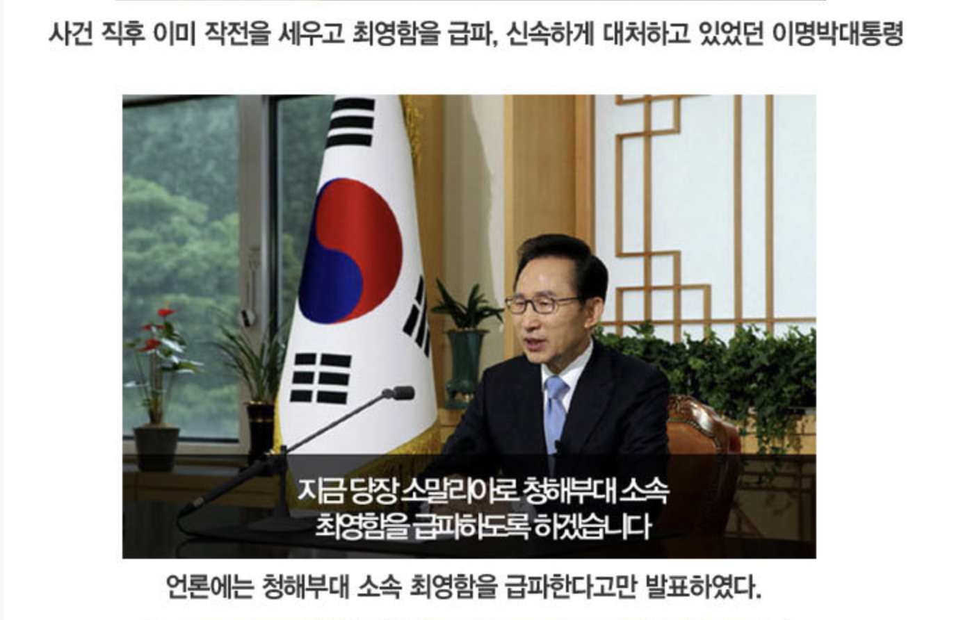 한국 군사력이 넘사벽임을 증명하고 절대 못건들게 만든 대통령이 직접 지휘한 아덴만 여명작전