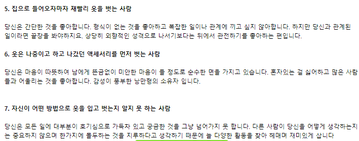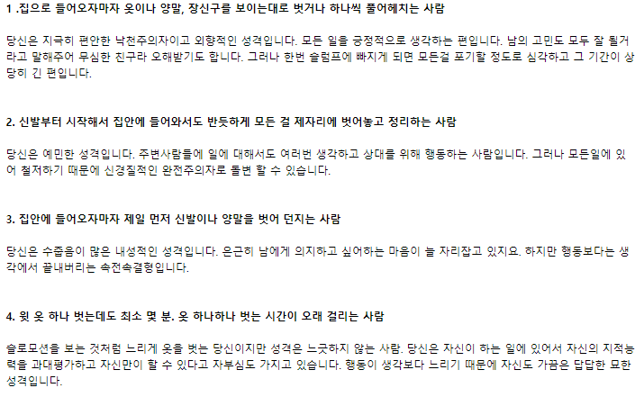 이 심리 테스트는 당신이 옷을 벗는 방법으로 성격을 알 수 있는 테스트입니다.