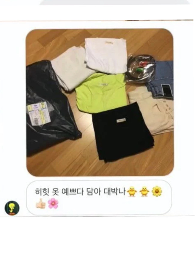 얼마 지나지 않아 아이유가 “옷이 너무 예쁘다 대박나길 바란다”는 메세지와 함께 옷의 인증샷을 보냈다는 훈훈한 일화를 알렸다.