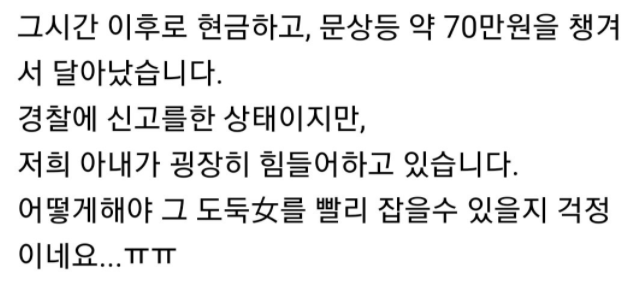 이어서 글쓴이는 “당시에 이미 경찰에 신고를 했고, 경찰의 연락을 기다리던 중 마침내 연락이 왔습니다.”라고 말을 덧붙였다.