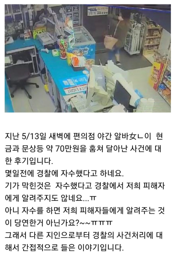 “편의점 알바생이 현금을 훔쳐 갔습니다.