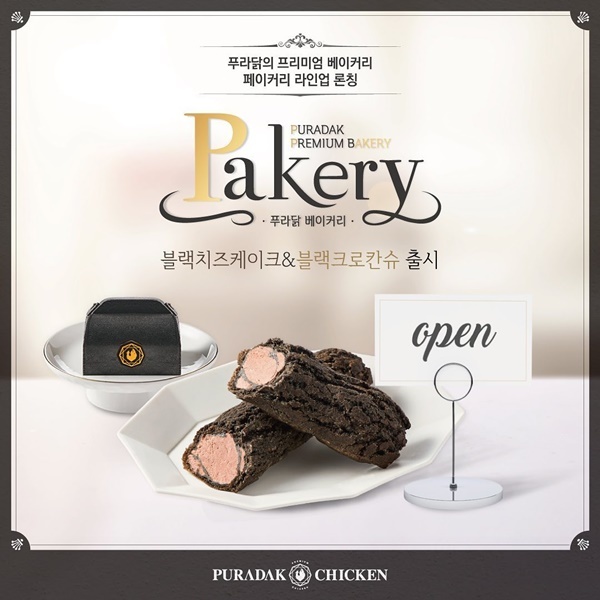 푸라닭은 베이커리 메뉴로 블랙치즈케이크와 블랙크로칸슈를 출시했다.