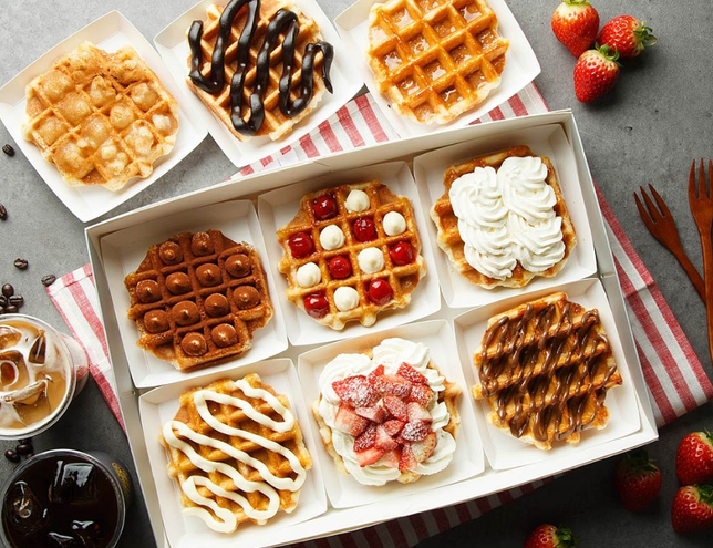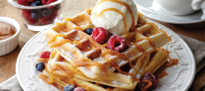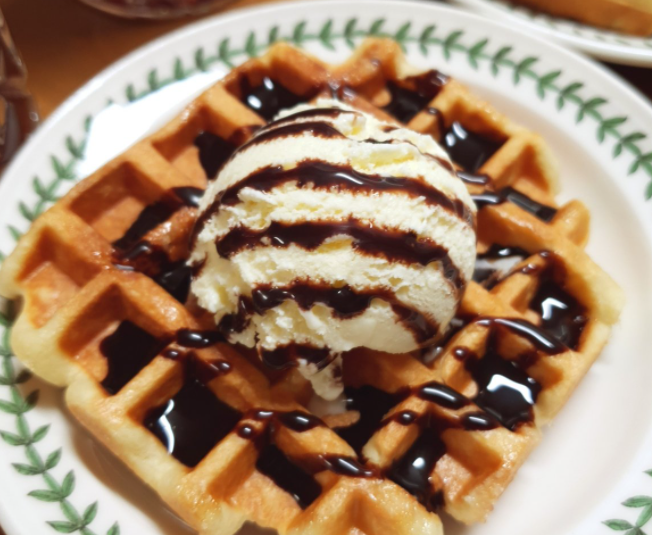 격자 모양으로 만드는 이유는 시럽이나 크림 등이 흘러넘치는 것을 막아 풍부하게 얹어 먹기 위해서이다.
