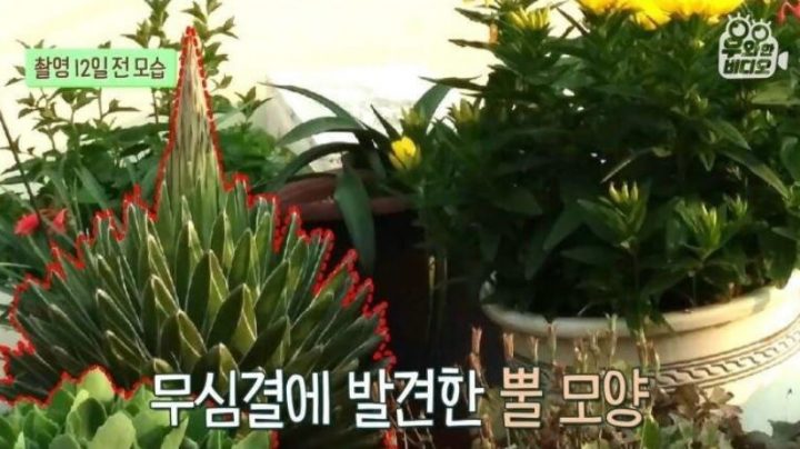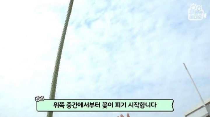 이어 그는 “그런데 가정집에서 이렇게 키운다는 것은 정말 어마어마한 일이다”, “그런데 꽃대가 솟고 꽃이 피고 진다는 것은 사망선고나 다름없다. 평생 한 번 꽃을 피우곤 죽는 일임 식물이기 때문이다. 하지만 걱정할 필요는 없다. 꽃이 피고 그 안에 종자를 맺는다”라고 말했다.