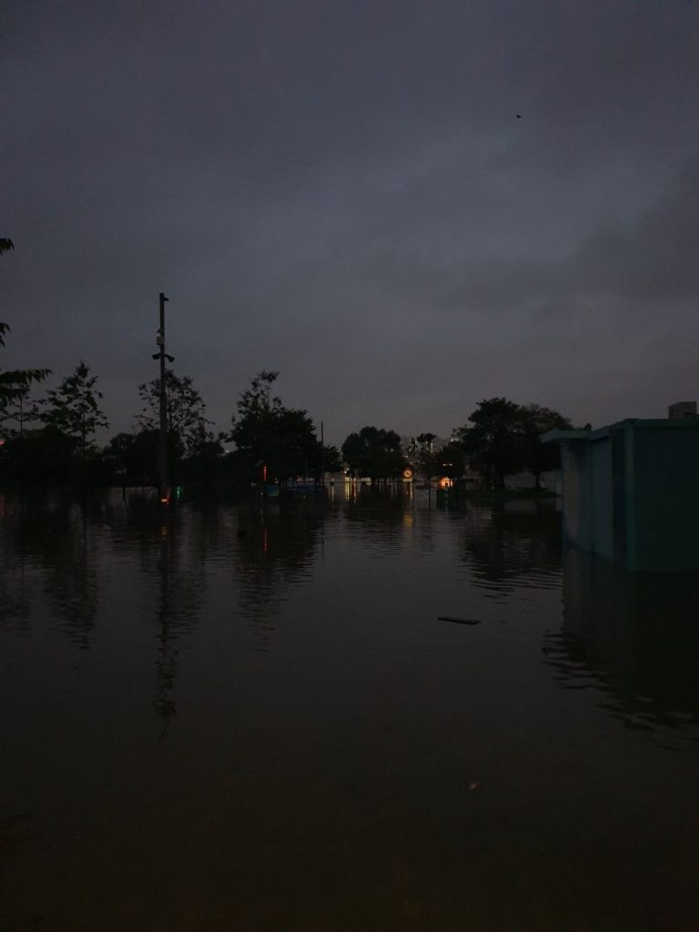 해당 사진에는 통행로까지 물이 차서 들어가지 못하는 길가의 사진이 담겨 있었다.
