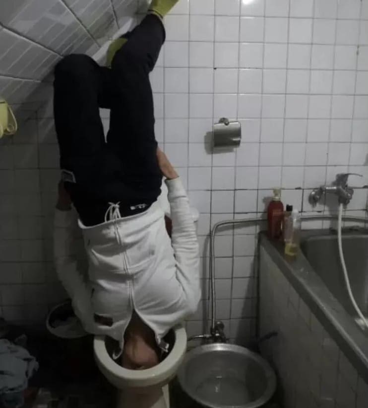 또 다른 누리꾼은 “변기에 물구나무서기했다”라며 실제 변기 속으로 머리를 집어넣고 물구나무서기를 하고 있는 모습을 인증해 첨부하였다.