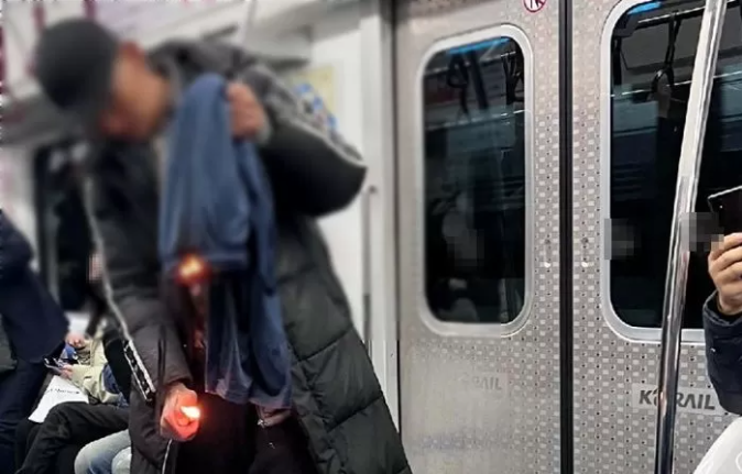 한 50대 남성이 지하철 1호선에서 바지에 불을 붙였다.