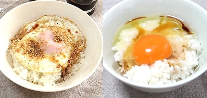 미리 익힌 반숙란을 밥위에 올리는 것이 아니라, 갓지은 뜨거운 밥에 날달걀을 넣어서 밥의 열기만으로 달걀을 익힌다.