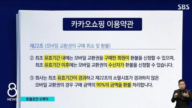 지난 24일 SBS ‘8 뉴스’는 카카오가 카카오톡 선물하기 환불 수수료로 700억 원대 이익을 거뒀다고 보도했다.