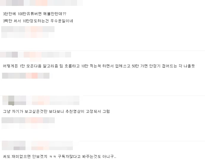 이어 “얼추 3천만원 정도면 100만 유튜버가 탄생하는 것이다”라고 밝혔다.