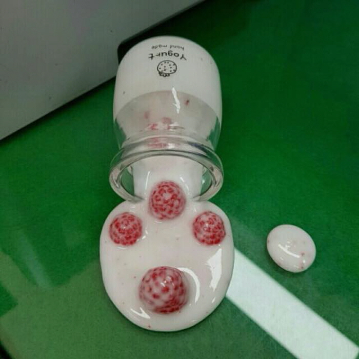 쏟아진 딸기 요거트 모양의 이 휴대폰 거치대는 실제 음식으로 착각할 정도로 실감나게 만들어졌다.