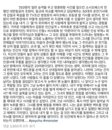 에디터의 폭로글에는 #psycho, #monster 해시태그 난색으로 유명한 표현을 남겼고, 네티즌들은 아이린과 슬기를 떠올렸다.