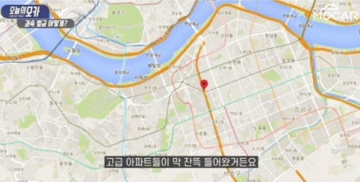 경부고속도로가 지나는 서울 구간에는 고급 아파트들이 잔뜩 있다.