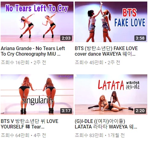 앞서 웨이브야는 각종 K-POP 노래의 안무 영상을 유튜브에 올렸다.