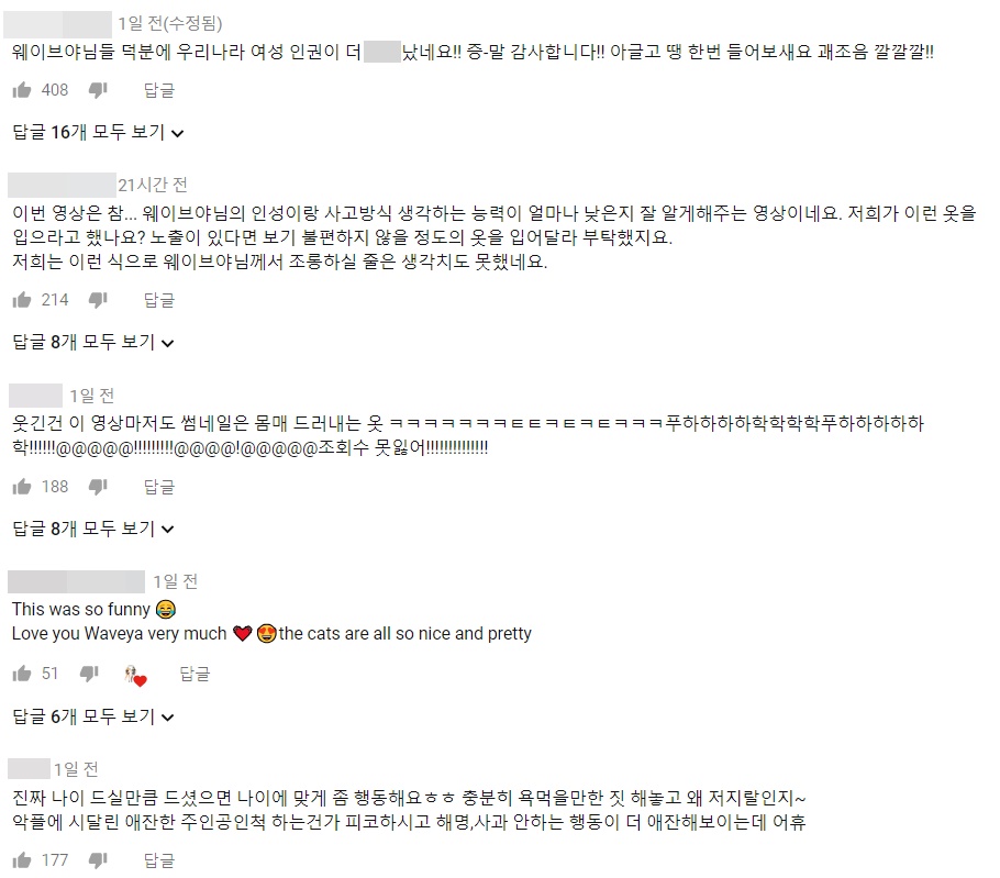 댄스 유튜버 ‘웨이브야’가 선정적인 의상을 지적하는 네티즌들에게 피드백을 했다.