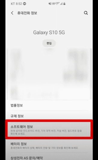 이후 가장 밑에 있는 [휴대전화 정보]를 누른 뒤, [소프트 웨어 정보]가 나오는데 그걸 누르면 굉장히 복잡해보이는 창이 나온다.