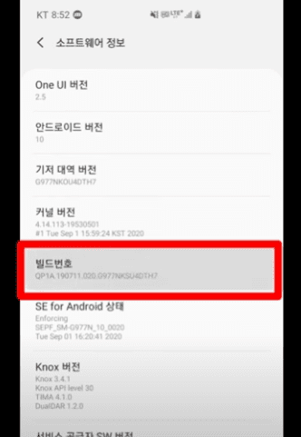 하지만 전부 무시하고 [빌드번호]라는 부분만 5~6번 눌러주면 된다.