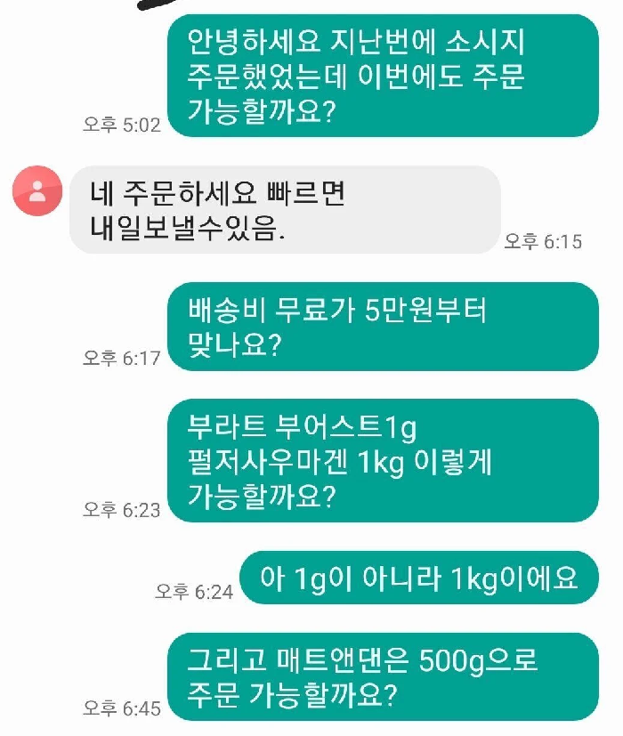 A씨는 소시지 판매자에게 “지난번에 소시지 주문했었는데, 이번에도 주문 가능할까요?”라고 물었다. 그러자 판매자는 “네. 빠르면 내일 보낼 수 있다”고 답했다.