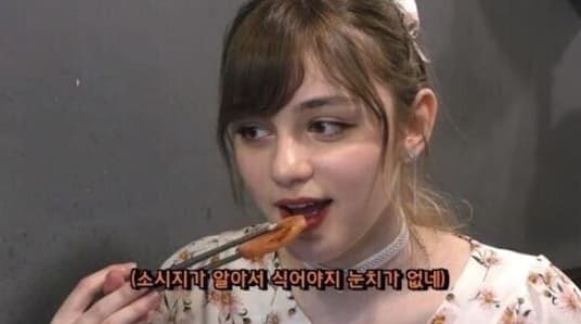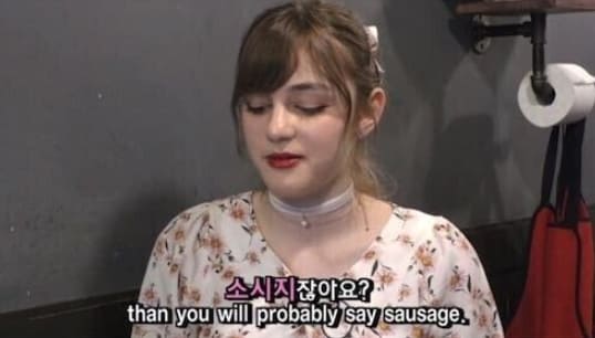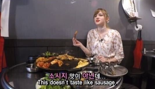이 게시물은 유튜브 채널 ‘코리아 이즈 히어(Korea is HERE)’에 올라온 동영상 ‘삼겹살에 환장하는 독일 누나 우리케!’의 한 장면을 캡처한 것이라고 한다.