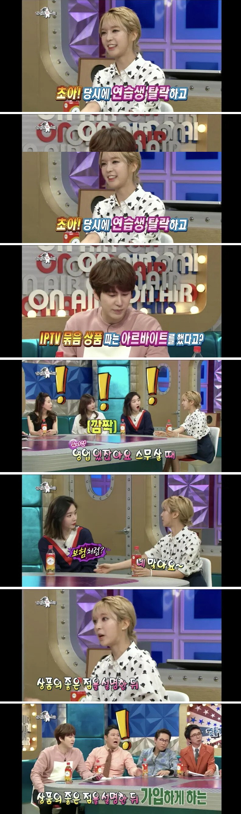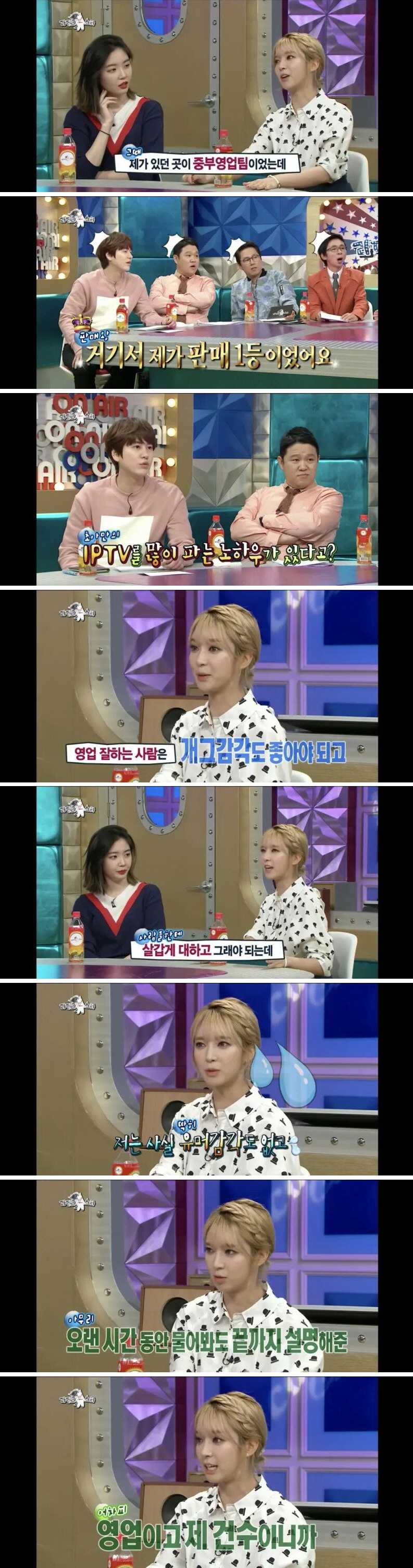 이어서 가수 초아는 “제가 있던 곳이 중부영업팀이었는데 거기서 제가 판매 1등이었습니다.”라고 말을 덧붙였다.