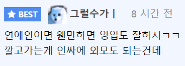 이를 본 온라인 커뮤니티 네티즌들은 “저렇게 영업을 잘하다니 역시 재능이 뛰어난 것 같아요.”라는 반응을 보였다.