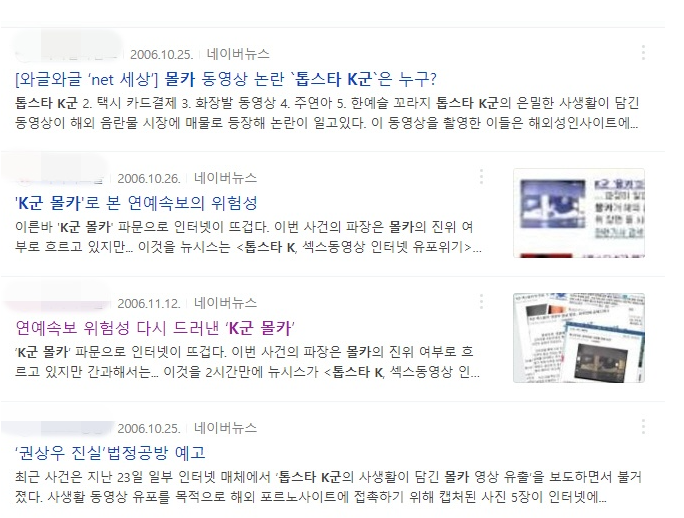 두 사람이 헤어진 이유는 2006년 10월에 불거진 ‘톱스타 K군 몰카 사건’ 로 보인다.