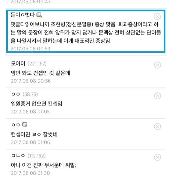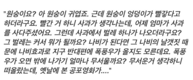 나름 논리의 흐름이랄게 있지만, 정상인이 보기에는 이상함을