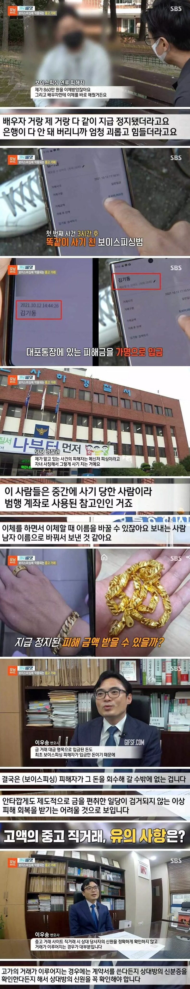 SBS 방송 프로그램 모닝와이드에서는 보이스피싱에 악용되는 중고거래에 관한 내용을 다뤘다.