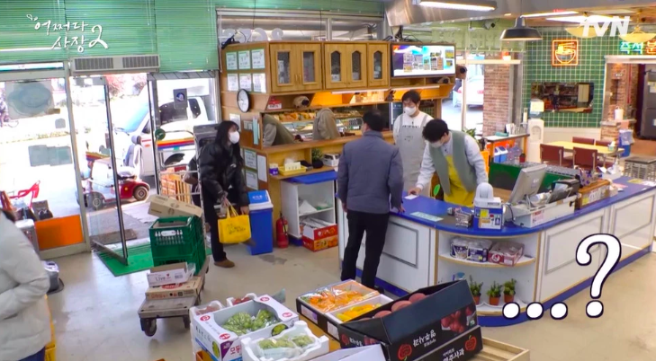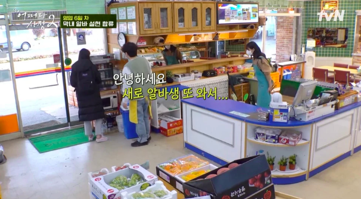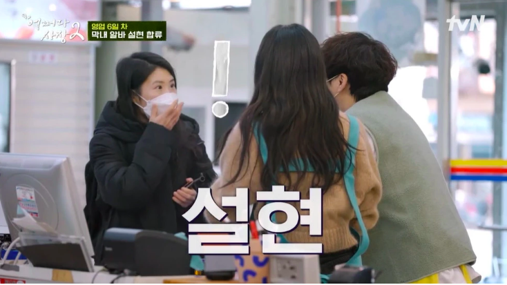 하지만 설현의 마스크때문에 웃픈 장면은 계속 나왔는데, 설현은 계산 업무를 배우기 위해 카운터에 있었다.