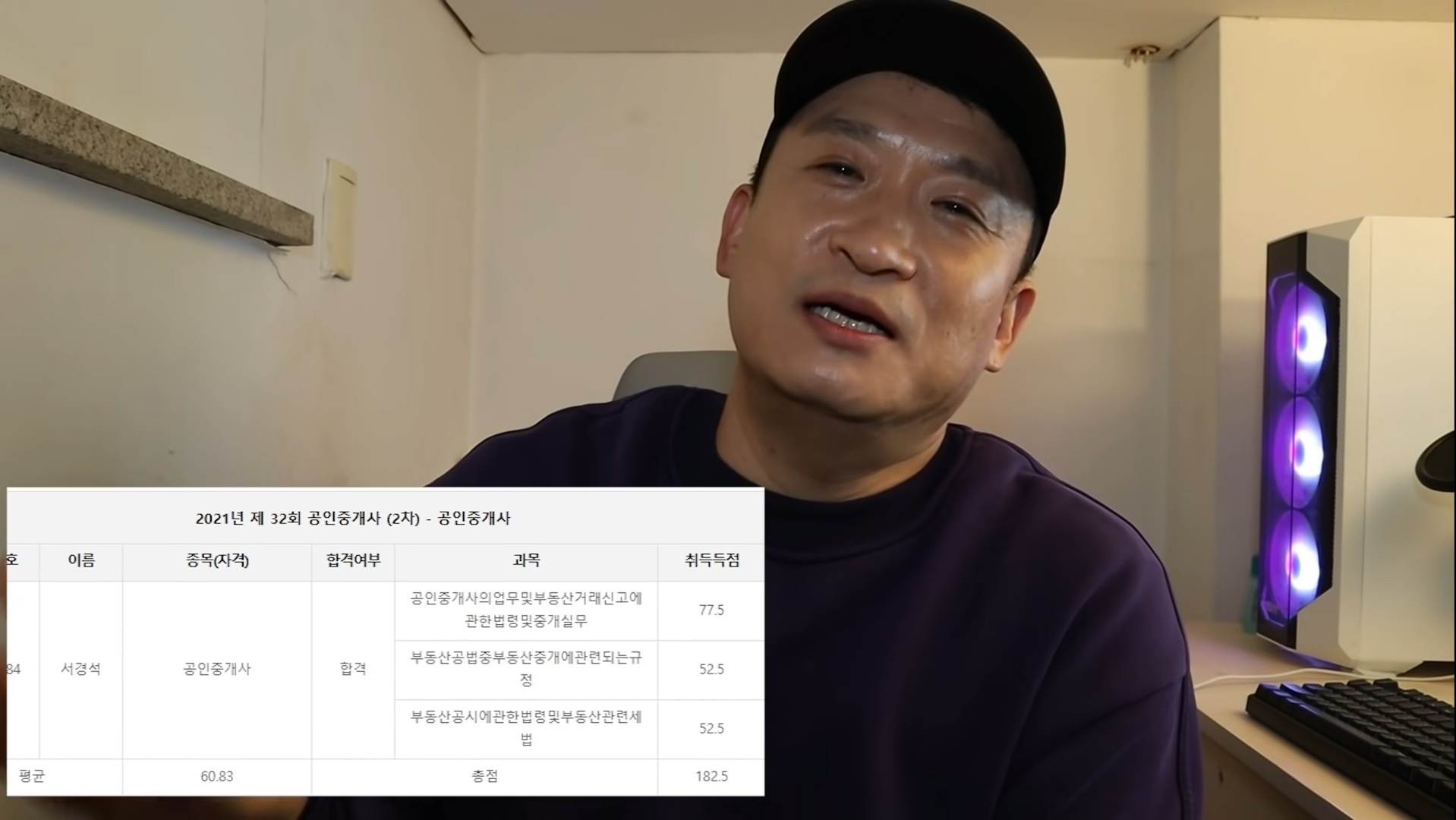 이 후 결과가 나온 후 “평균 60.83점으로 합격했다”며 “3문제 중 1개는 맞혔고, 나머지 1개는 이의제기가 받아들여져 정답 처리된 것 같다. 기적적으로 합격했다”고 밝혔다.