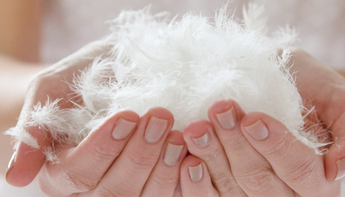 천연 소재는 덕다운이나 구스다운 같은 동물의 털을 의미한다.