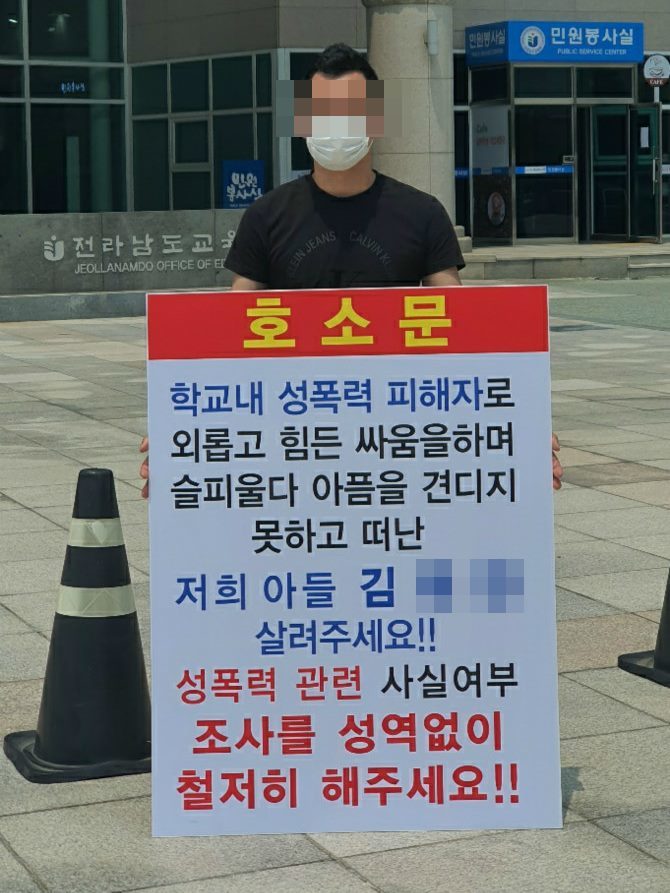 부부는 현재 전남 교육청 앞에서 1인 시위를 이어가고 있다.