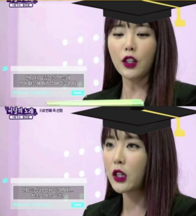 대학원생으로 추정되는 시청자가 ‘언니 저 요즘 논문 쓰는데 영어 때문에 머리 쥐어 뜯습니다. 언니는 무려 박사 학위까지…. 팝송도 가능하쥬?’라 물으며 신청곡을 보냈다.