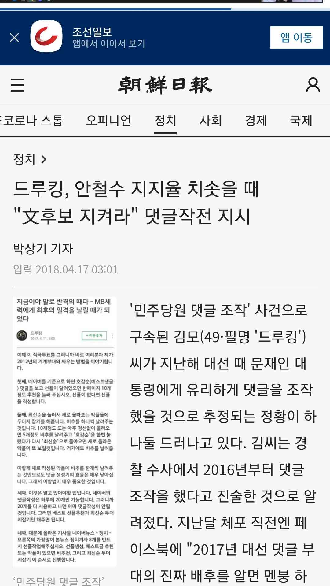 지속적인 드루킹 댓글 조작,가짜뉴스를 퍼트려 진거임