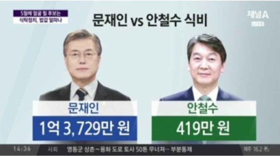 “사람..? 음식이 먼저다..” 식비만 1억 넘게 썼던 문재인 대통령과 안철수 대선후보 비교