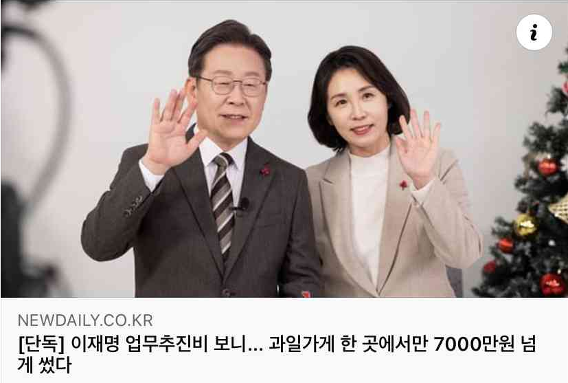 “과일 가게에서만 7000만원..” 이재명 대통령 후보가 사용한 국민들의 혈세인 업무추진비 목록