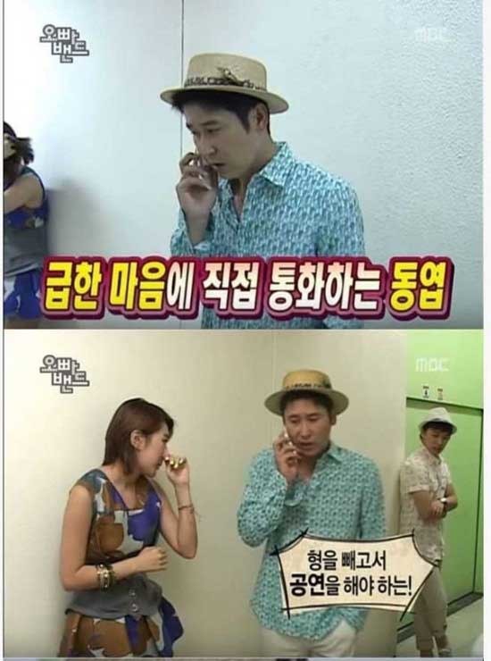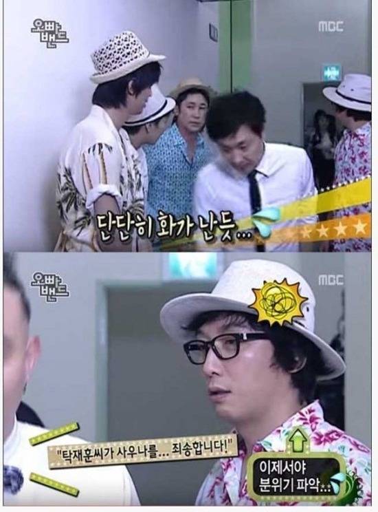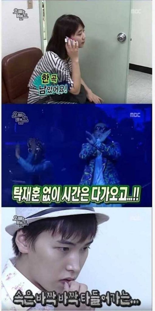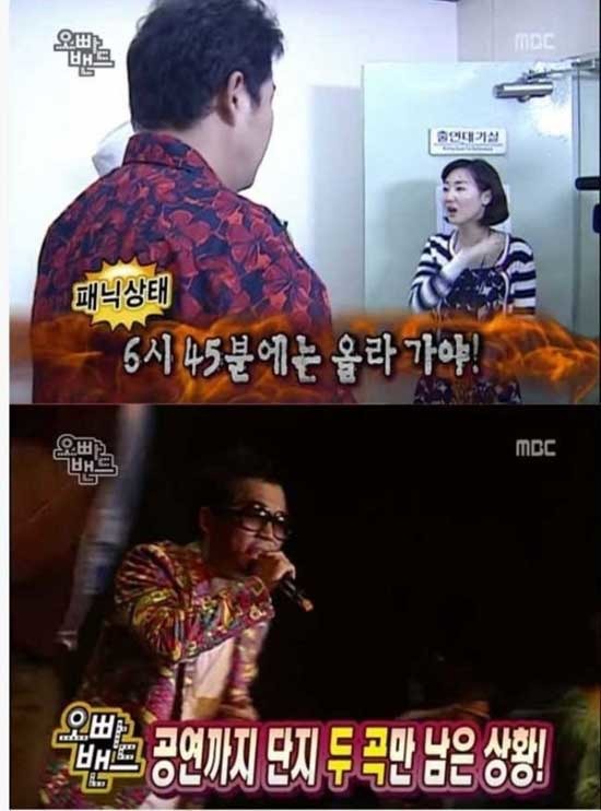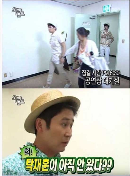 다음은 과거 MBC 일밤 ‘오빠 밴드’에서 탁재훈이 생방송 10분 전에 사우나에 갔다가 유료 공연에 늦는 모습이 방송된 장면이다.