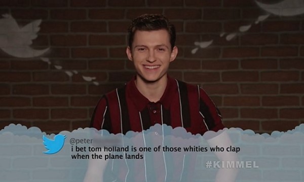 또 ‘스파이더맨’ 톰 홀랜드는 “내가 장담하는데 톰 홀랜드는 비행기가 착륙할 때 손뼉 치는 백인 중 한 명일껄”이라는 악플을 읽으면서도 해맑은 미소를 지어 보였다.