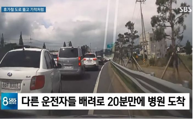순찰차 앞에 있던 차량들이 공간을 조금씩 내어주며 길을 만들어주었고 이에 1시간이 넘게 걸릴뻔한 여정을 20여분만에 마무리 지으며 무사 병원에 도착했다.