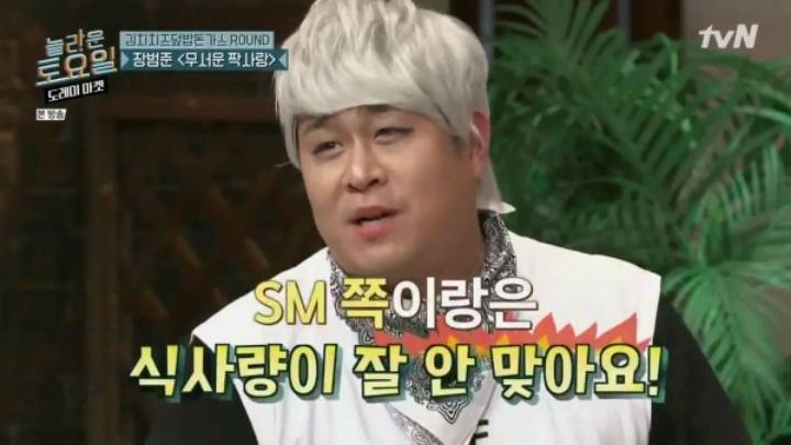 개그맨 문세윤이 SM 가수들과 식사량으로 마찰(?)을 빚어 큰 웃음을 만들었다.