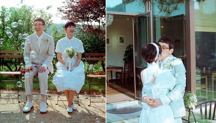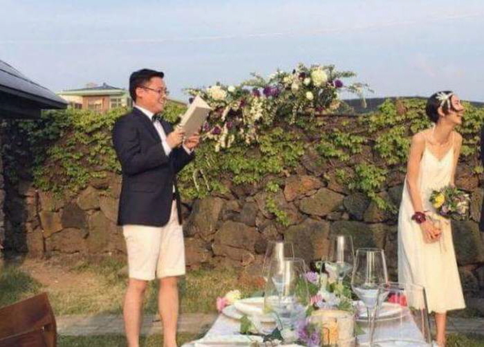 두 사람은 팔당대교와 한강이 보이는 남양주의 한 레스토랑에서 지인들과 주례 없이 파티 형식의 결혼식을 올렸다.