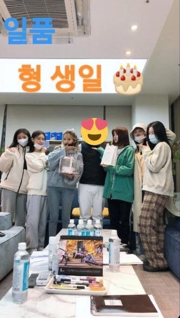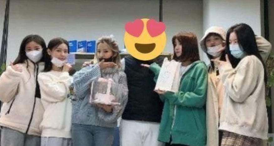 해당 사진에는 수진을 포함한 (여자)아이들 멤버 6명과 강 대표로 추정되는 인물 7명이 함께 서 있었다.