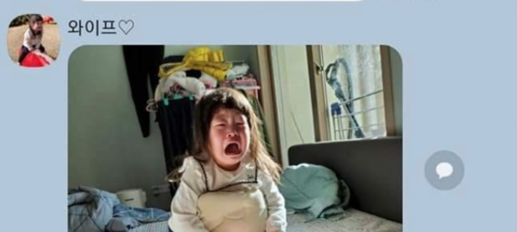 이에 부인은 화가 났는지 “아니 왜 하린이 자는 얼굴 앞에 놔둬 일어나자마자 대성통곡 하잖아” 라며 우는 아이의 사진도 함께 보냈다.