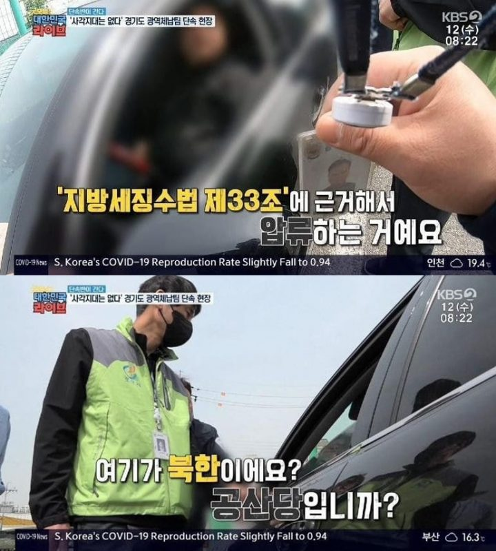 단속팀이 “4년 동안 왜 세금을 안 내셨어요?”라고 계속해서 묻자 운전자는 “깡패도 아니고 뭐예요? 여기가 북한이에요? 공산당입니까?”라며 화냈다.